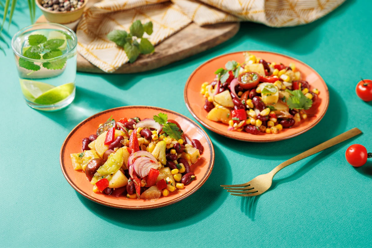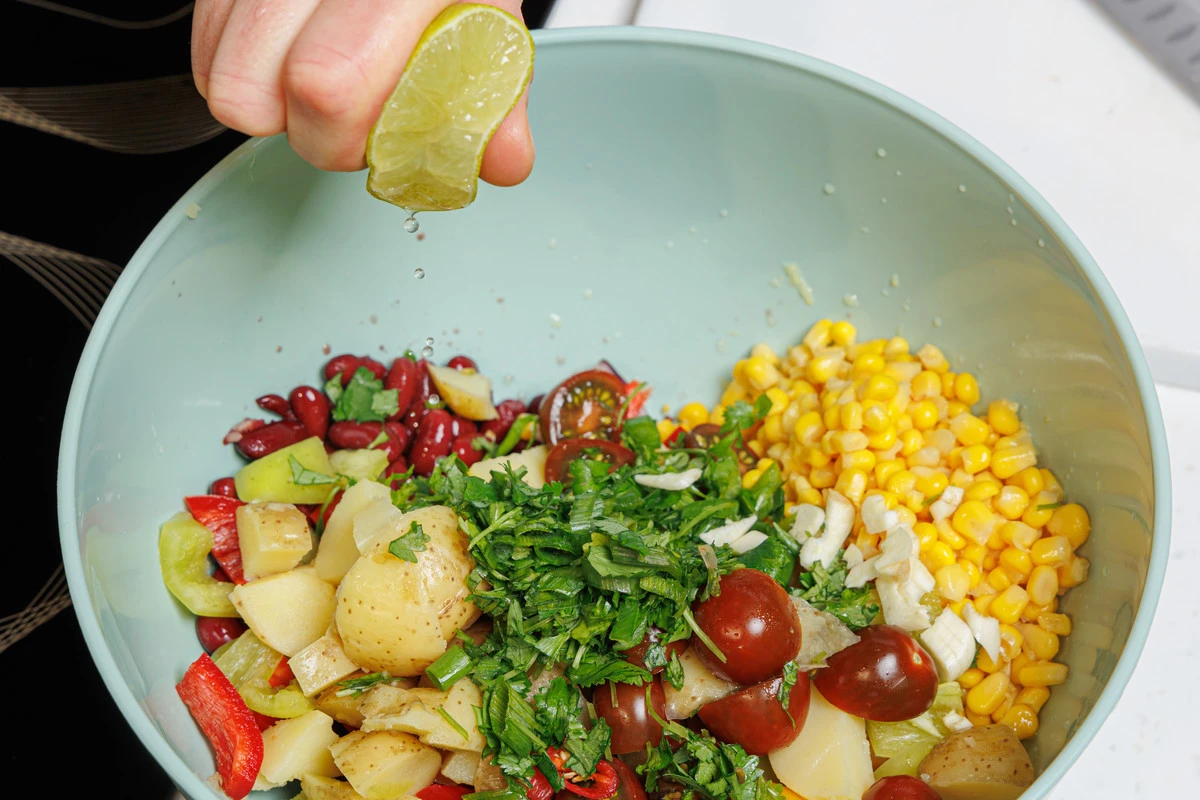 Этот простой, яркий и вкусный салат можно приготовить в любое время года — и будто перенестись в солнечную Мексику, даже если за окном серо или снежно. В нём нет ингредиентов животного происхождения, но при этом он очень сытный.