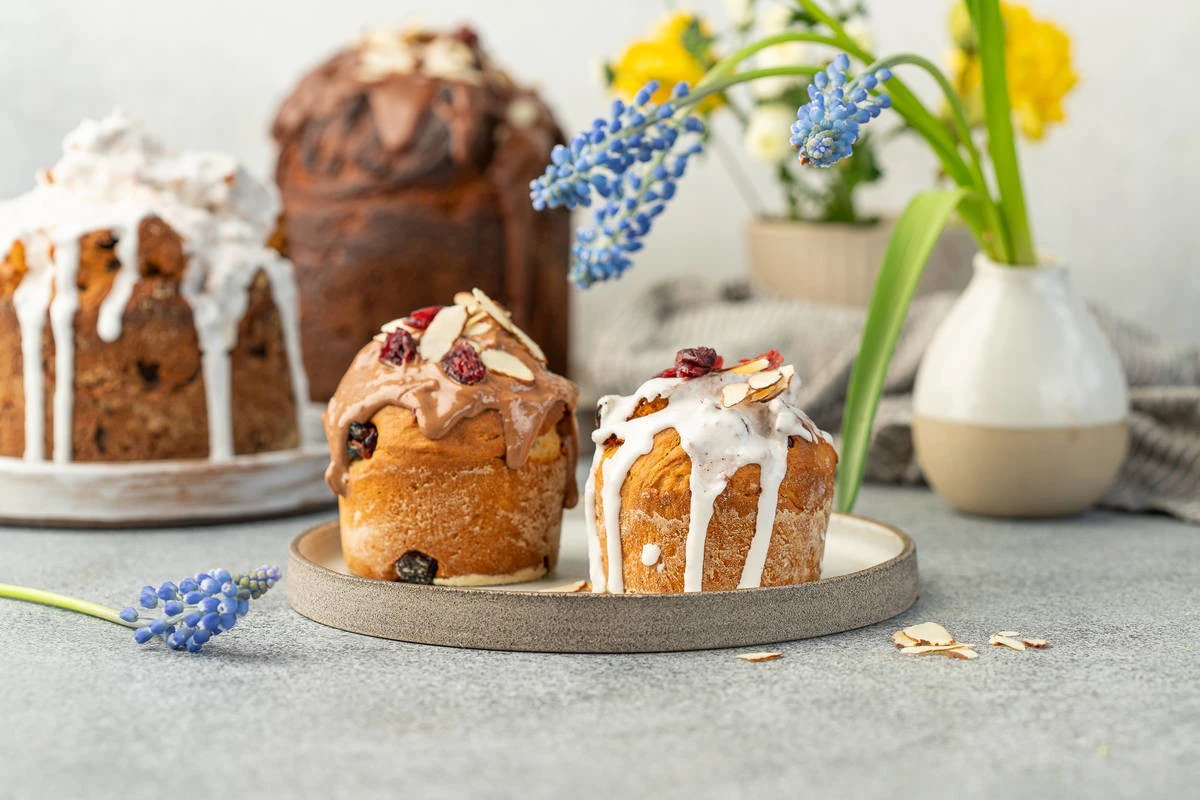 По этому рецепту вы можете приготовить классические куличи недлительной расстойки, но мы предлагаем сделать мини-куличики в формах для маффинов или маленьких кексов. Украсьте их шоколадом и орешками, берите с собой в гости и угощайте близких и друзей.