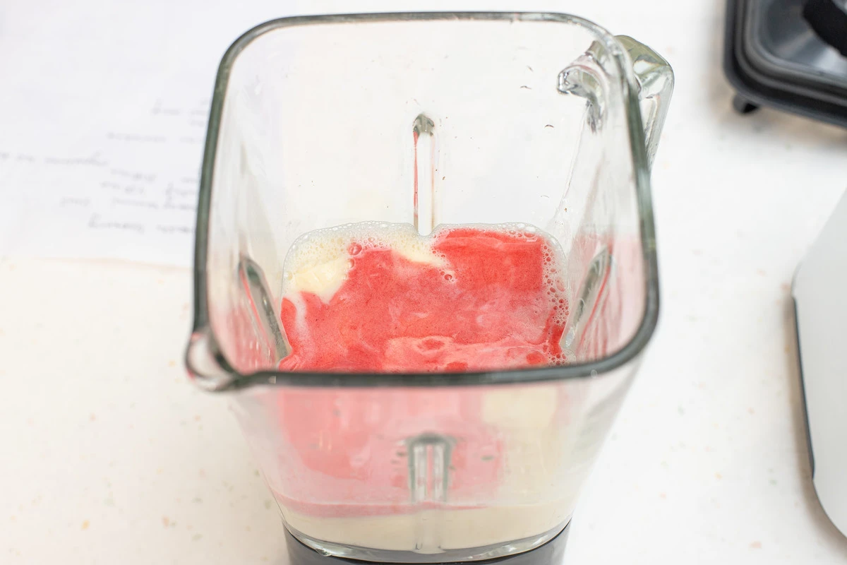 Добавьте мороженое и ещё раз взбейте. По желанию можно добавить немного кокосовой сгущёнки для сладости.