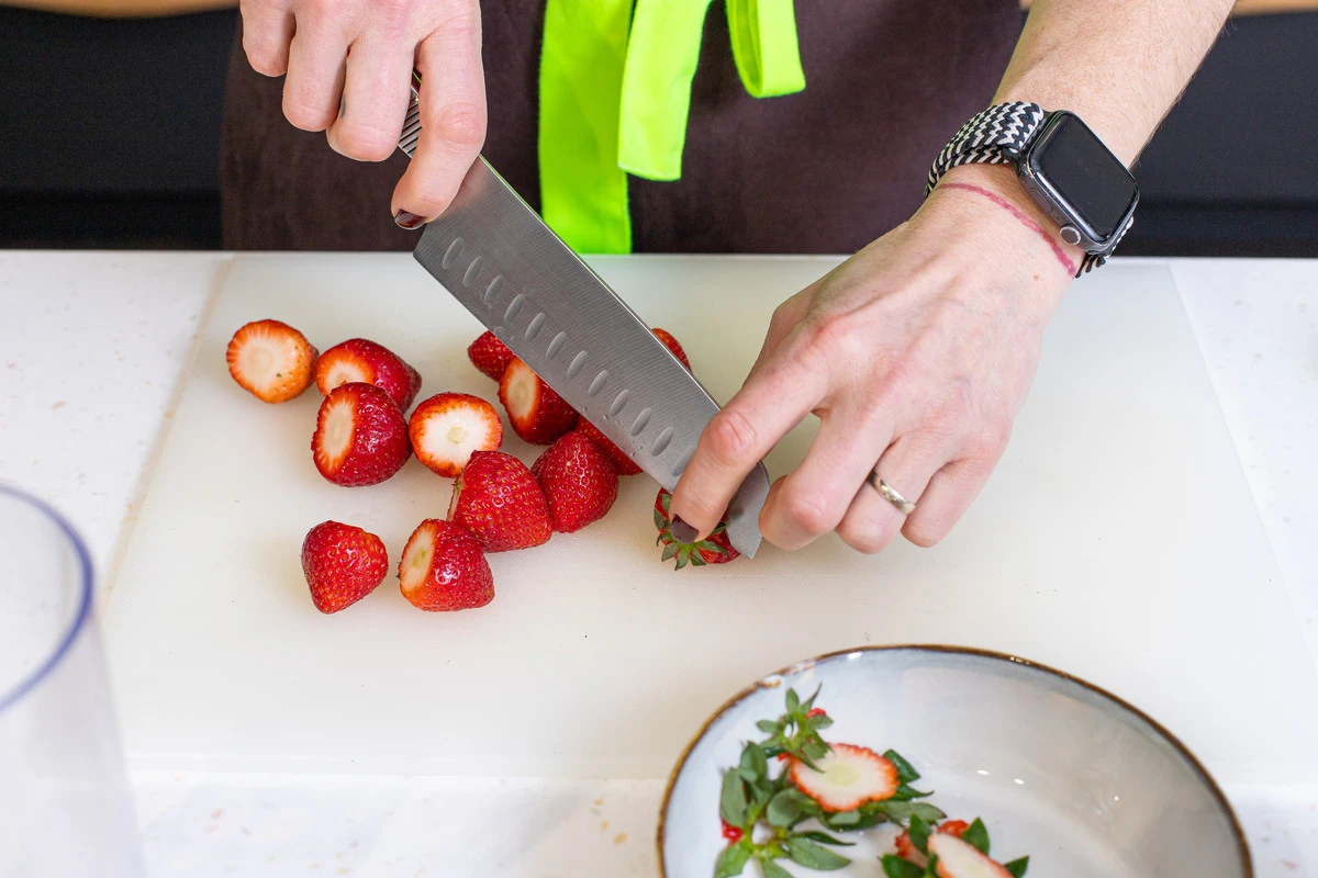 Клубнику помойте, обсушите, удалите хвостики.