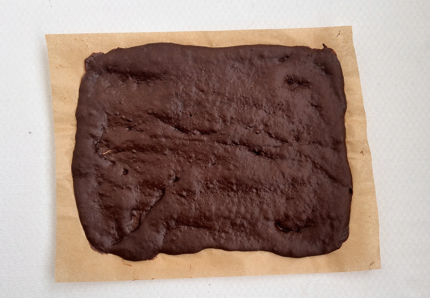 Перелейте тесто на пергамент, разровняйте в пласт и отправьте в духовку на 10–15 минут при 180 C. Готовый бисквит остудите.