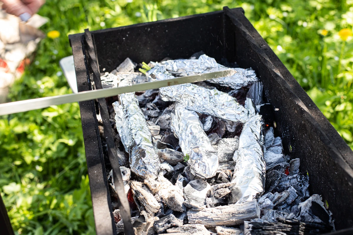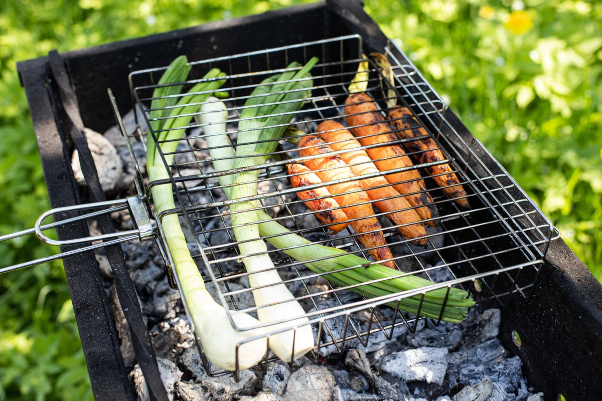 Запеките морковь над углями на решётке до мягкости, это займёт около 15 минут.