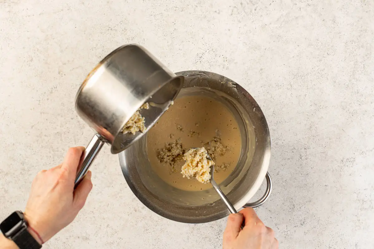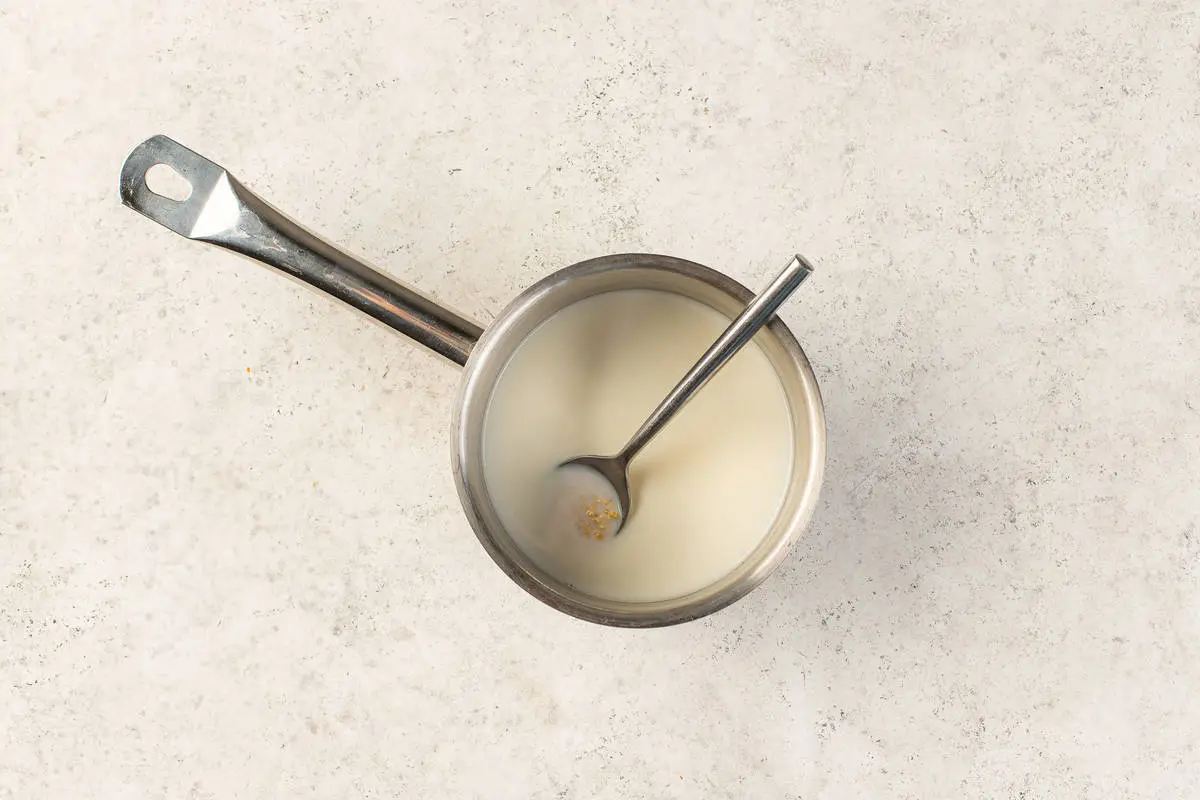 Перед началом приготовления тщательно промойте пшено. В небольшую кастрюлю налейте 100 мл молока и 100 мл воды. Всыпьте в полученную смесь пшено, поставьте на плиту и доведите до кипения. Посолите, убавьте огонь до минимума и варите, постоянно помешивая, до загустения — каша не должна получиться жидкой. Не прибавляйте огонь и не отвлекайтесь, иначе пшено может пригореть. Снимите блюдо с огня и оставьте в прохладном месте до остывания.