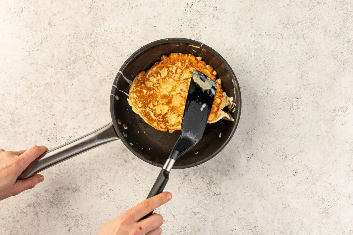 Разогрейте сковороду с небольшим количеством масла на среднем огне. Выливайте в её центр полученное тесто небольшими порциями, формируя из него аккуратные толстые блинчики. Обжаривайте с обеих сторон до насыщенной румяной корочки, чтобы они полностью пропеклись. Пачат получаются значительно толще обычных блинов, из-за чего готовить их нужно немного дольше.
