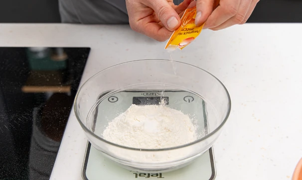 В миске смешайте муку, соду, разрыхлитель и специи.