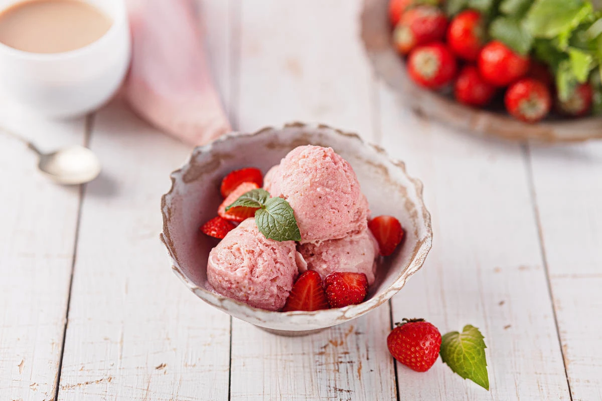 Рецепт молочного мороженого с ярким ароматом свежей клубники. Попробуйте приготовить его дома: вам понадобится мороженица или миксер, блендер и морозилка. Мы готовили его с помощью миксера, без мороженицы — и мороженое получилось отличное.