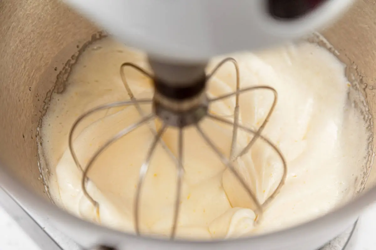 Соедините сливки с яичной массой, аккуратно перемешайте (не взбивая).