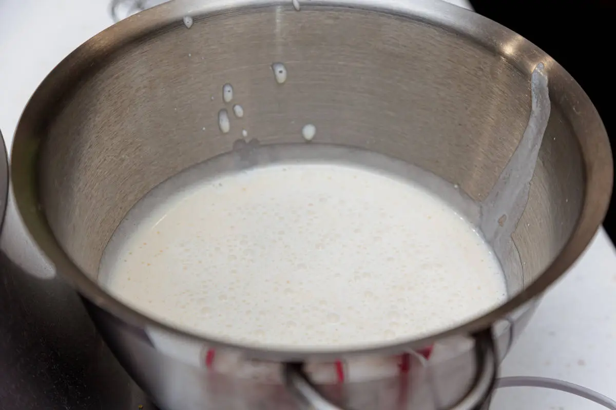 Добавьте несколько ложек пюре маракуйи: можно слегка перемешать или, наоборот, оставить концентрированные «шарики» из пюре.