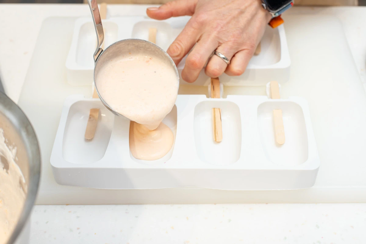 Разлейте получившуюся заготовку по формам, воткнув палочки, и уберите в морозилку минимум на 4 часа. Так как мороженое у нас порционное, в процессе заморозки не нужно его доставать и перемешивать.