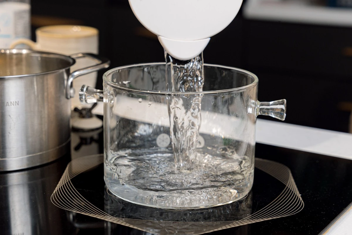 Налейте воду в кастрюльку или ковш.