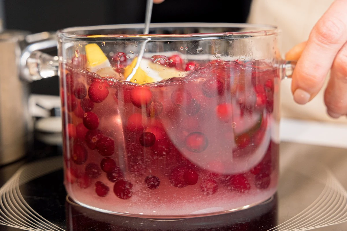 Потолките клюкву, чтобы сделать напиток ещё более насыщенным, по желанию можете процедить. Оставьте настаиваться до остывания или пейте сразу.