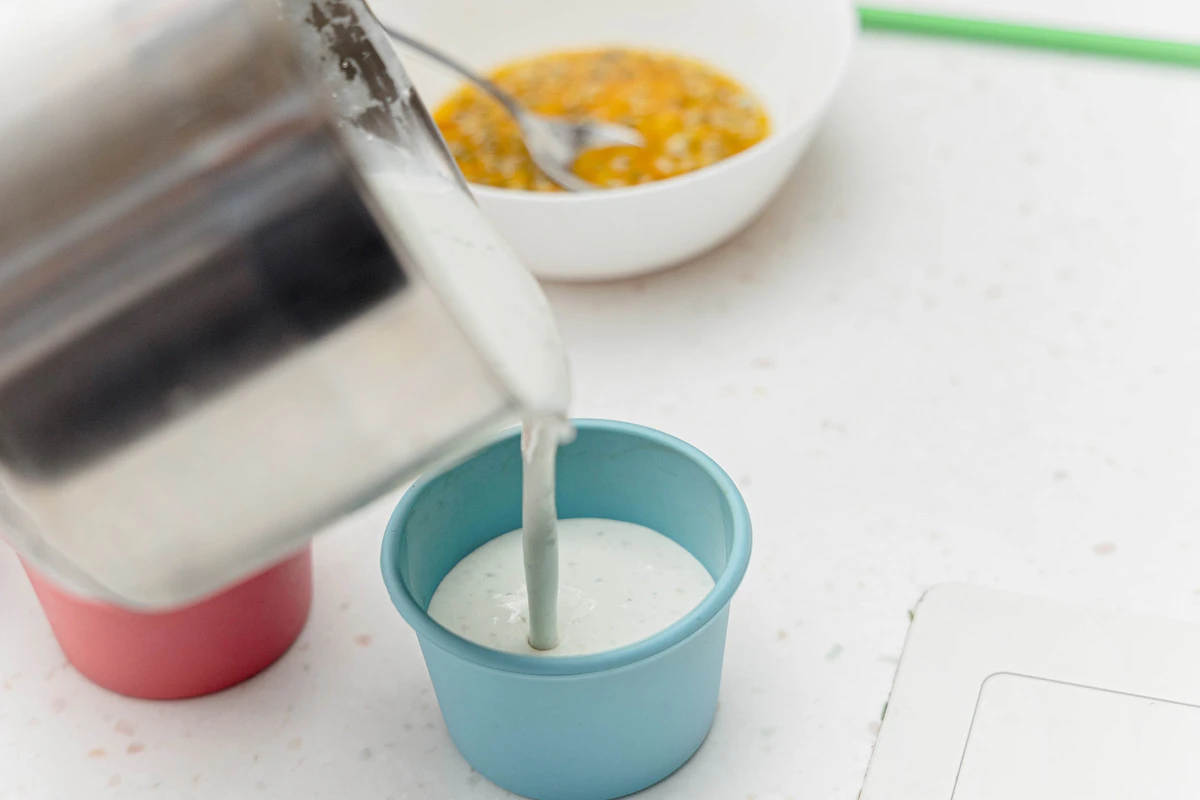Разлейте смесь по порционным стаканчикам или формочкам.