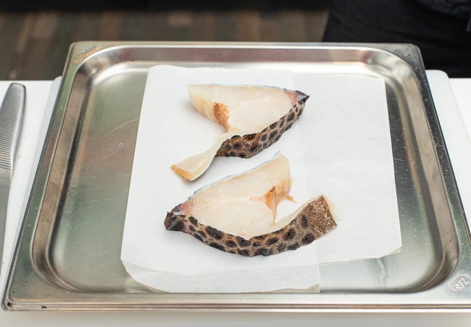 Запеките зубатку в духовке при температуре 180 градусов в течение 20 минут.