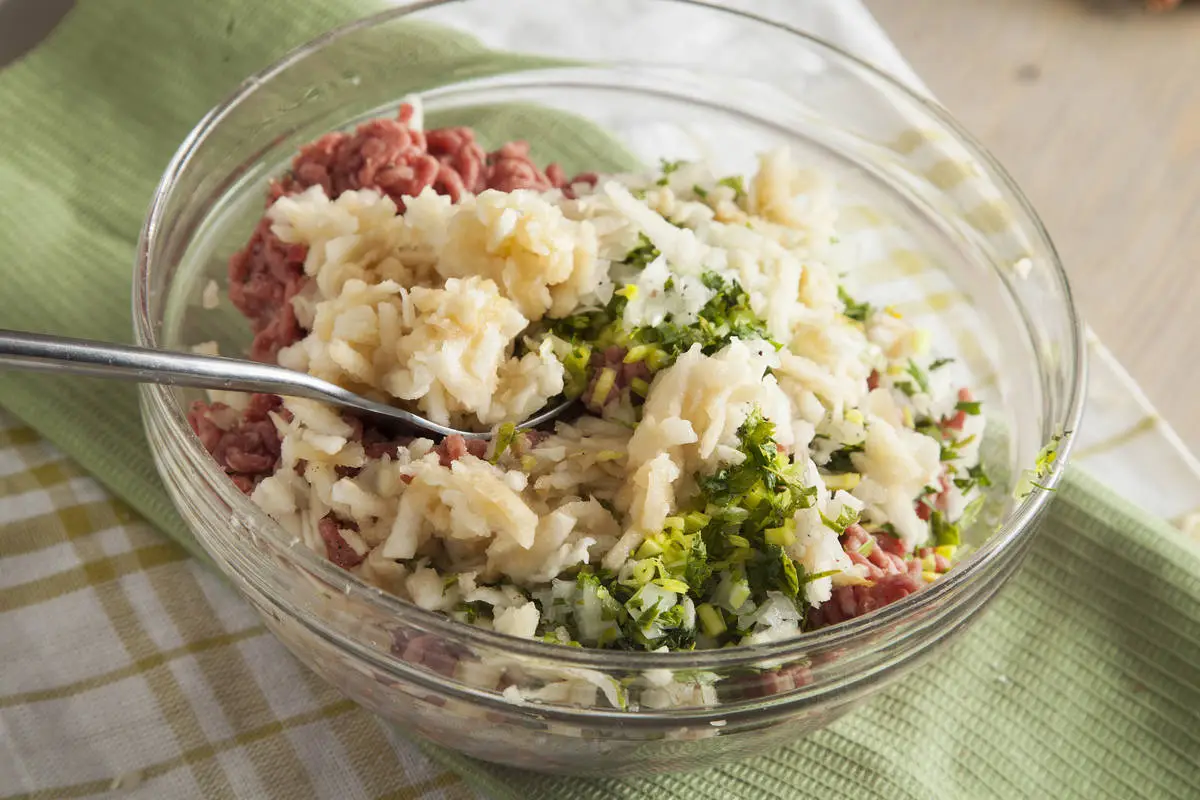 Добавление яблока делает эти котлетки из телячьего фарша особенно нежными, а с зеленью можно поэкспериментировать, к примеру добавить несколько листиков мяты!