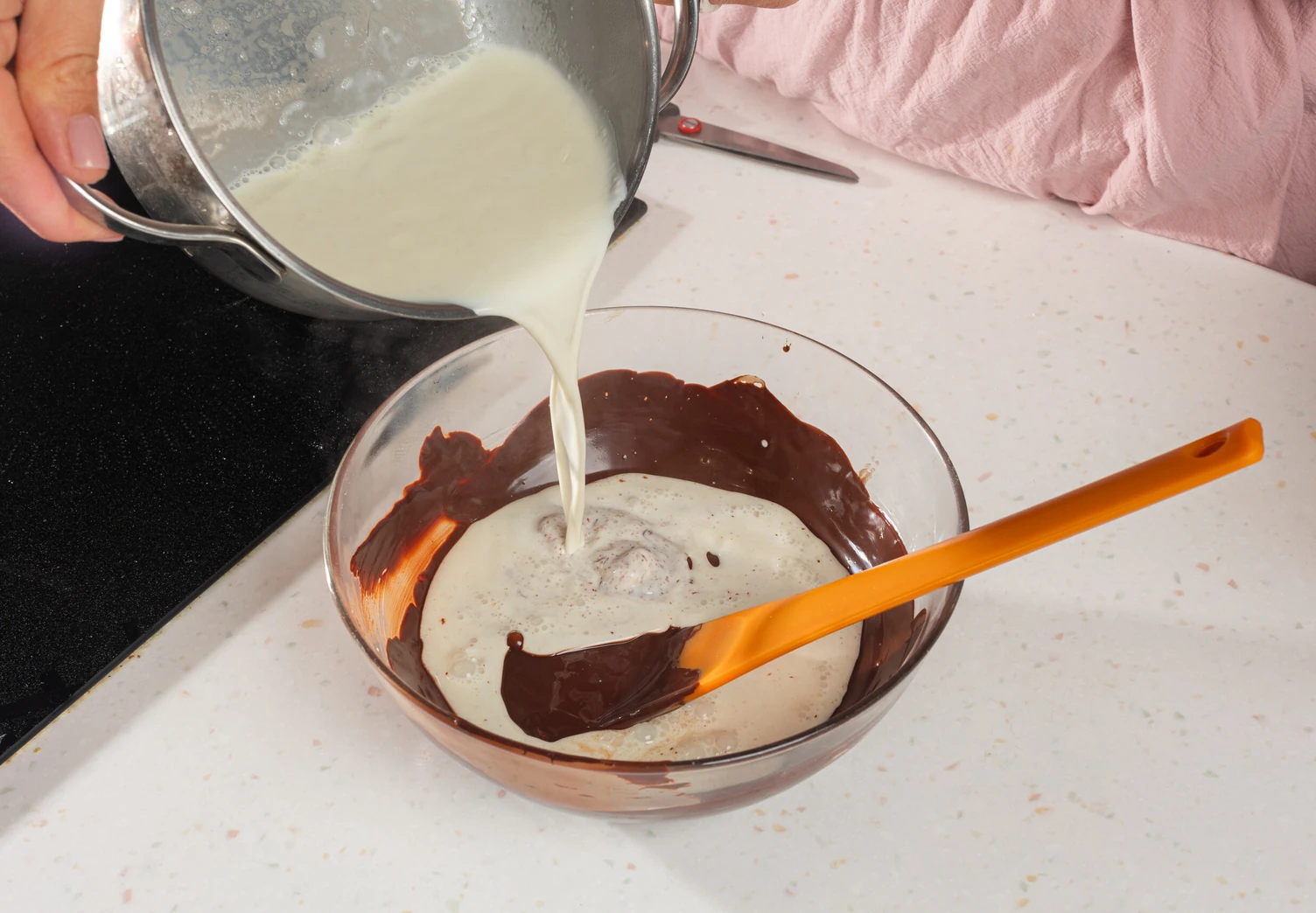Затем перемешайте силиконовой лопаткой до состояния гомогенной массы. Добавьте мягкое сливочное масло, переложите массу в кондитерский мешок с насадкой «закрытая звезда» и уберите его в холодильник на пару часов.