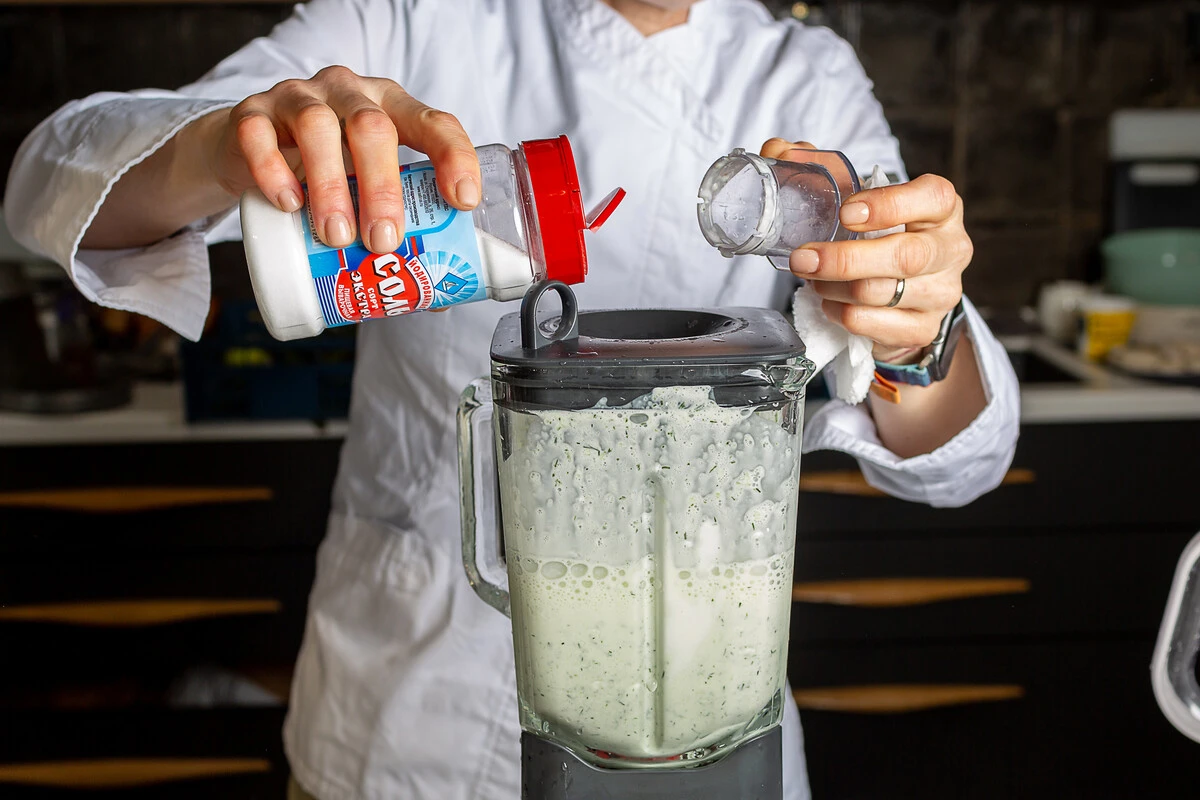 Измельчите все ингредиенты до однородности и при необходимости посолите смузи по вкусу.