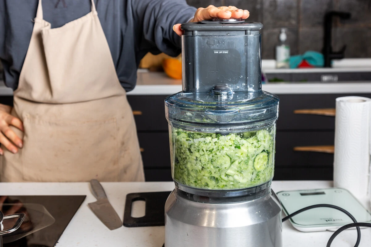 Положите огурцы в чашу кухонного комбайна или блендера, выжмите туда же сок целого лайма.