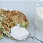 Столовой ложкой выкладывать оладушки на горячую сковороду, обжарить с обеих сторон. Лучше не солить сырой кабачок — он даст слишком много сока, посолите готовые оладьи, и кушайте со сметаной.