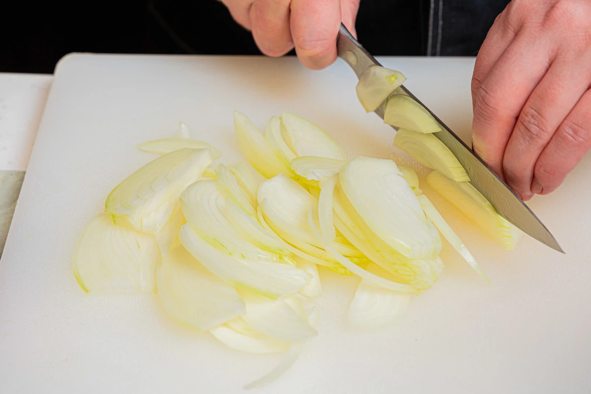 Лук нарежьте полукольцами.