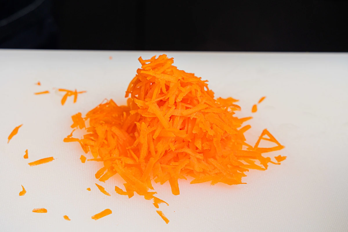 Морковь помойте, почистите и измельчите на крупной тёрке.