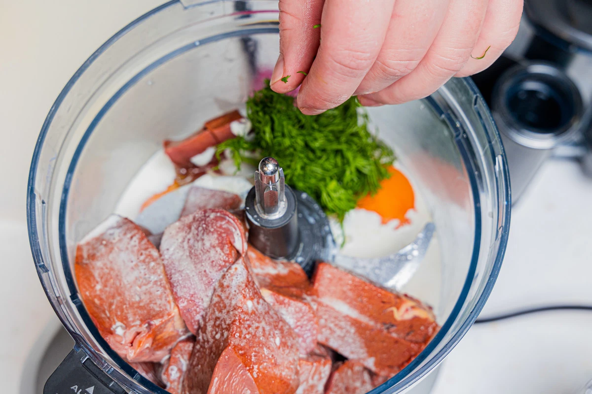 Печень помойте, обсушите. Нарежьте крупными кусочками и положите в чашу комбайна или блендера.