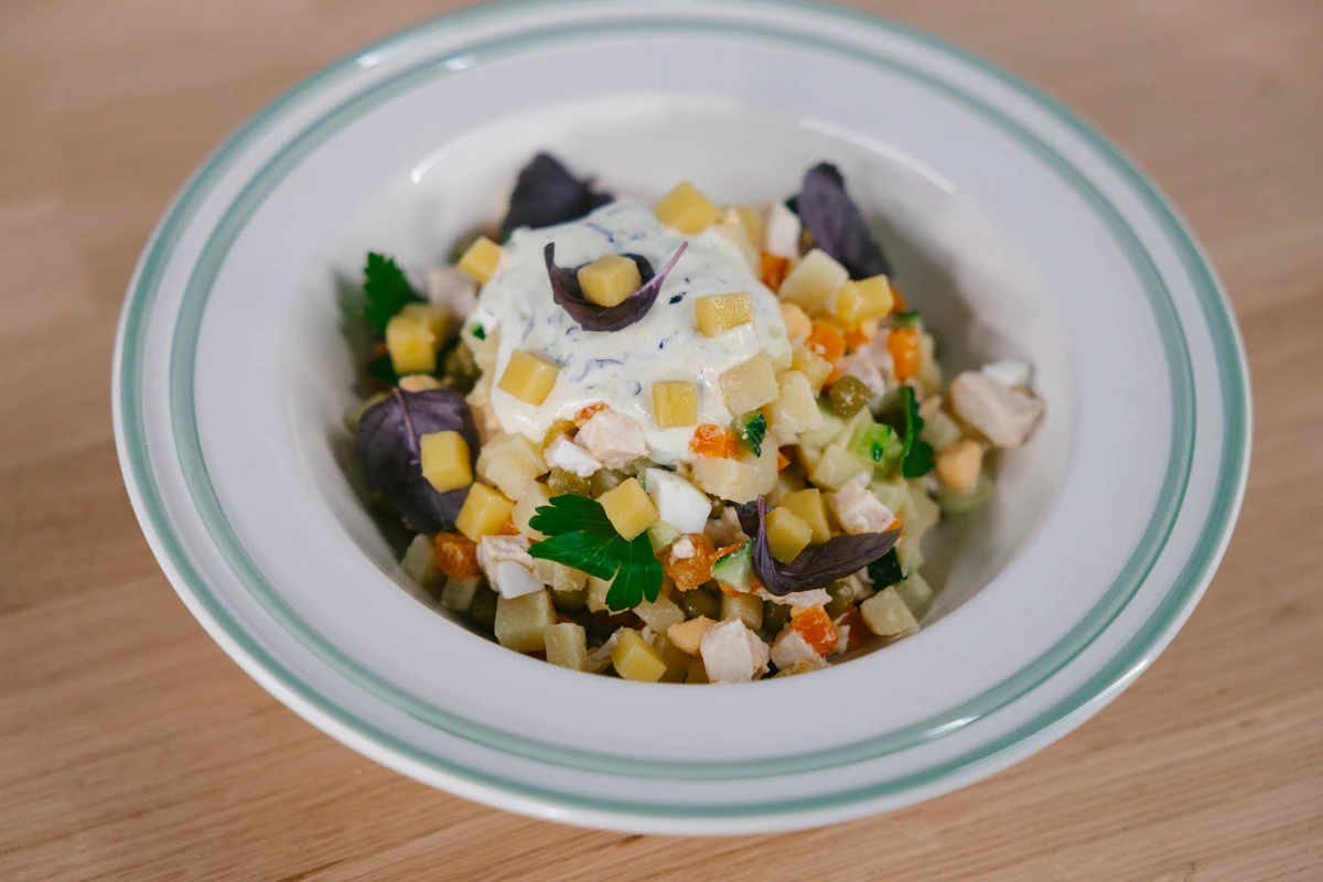 Рецепт «Оливье с манго и йогуртовой заправкой»