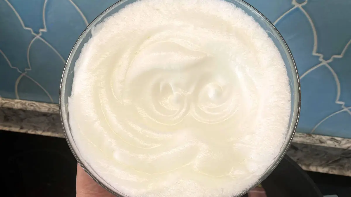 Белки немного взбила и добавила соль по вкусу. Продолжила взбивать до устойчивых пиков.
