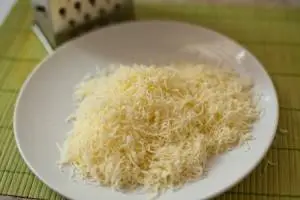 Через 5 минут посыпать всё натёртым сыром и опять в духовку уже на 15 минут.