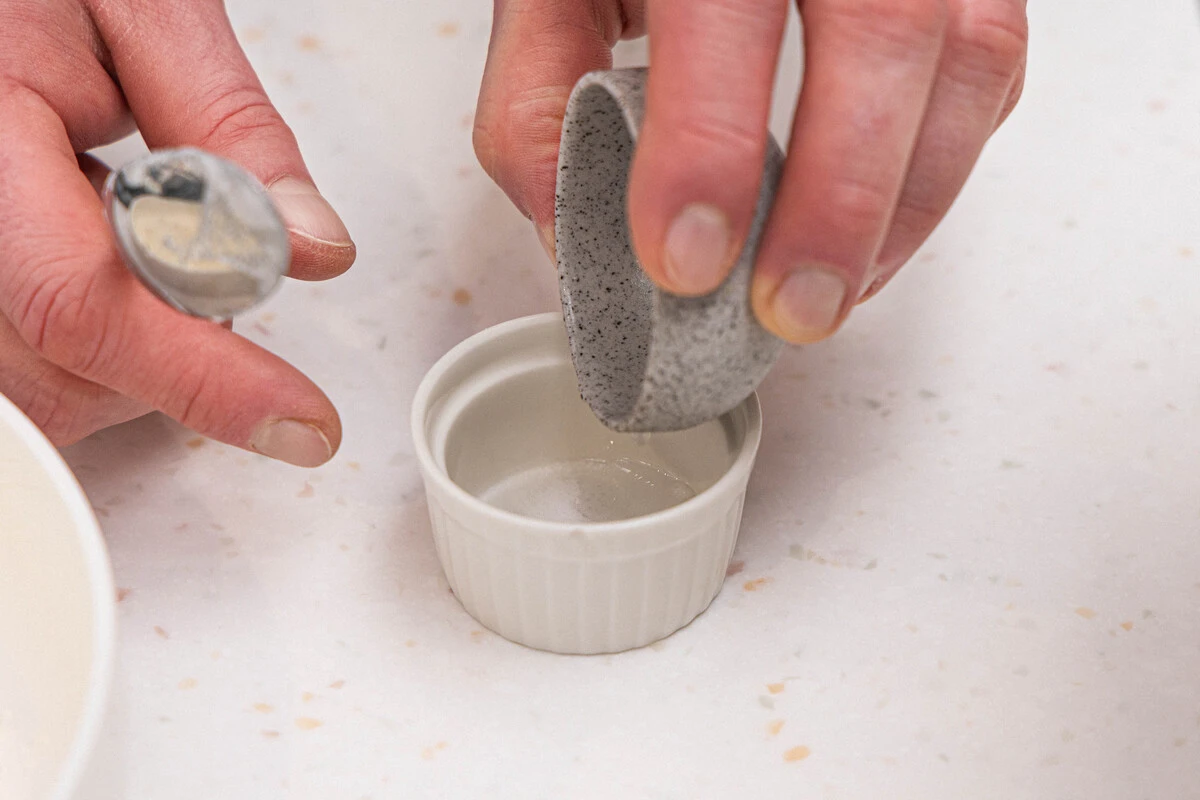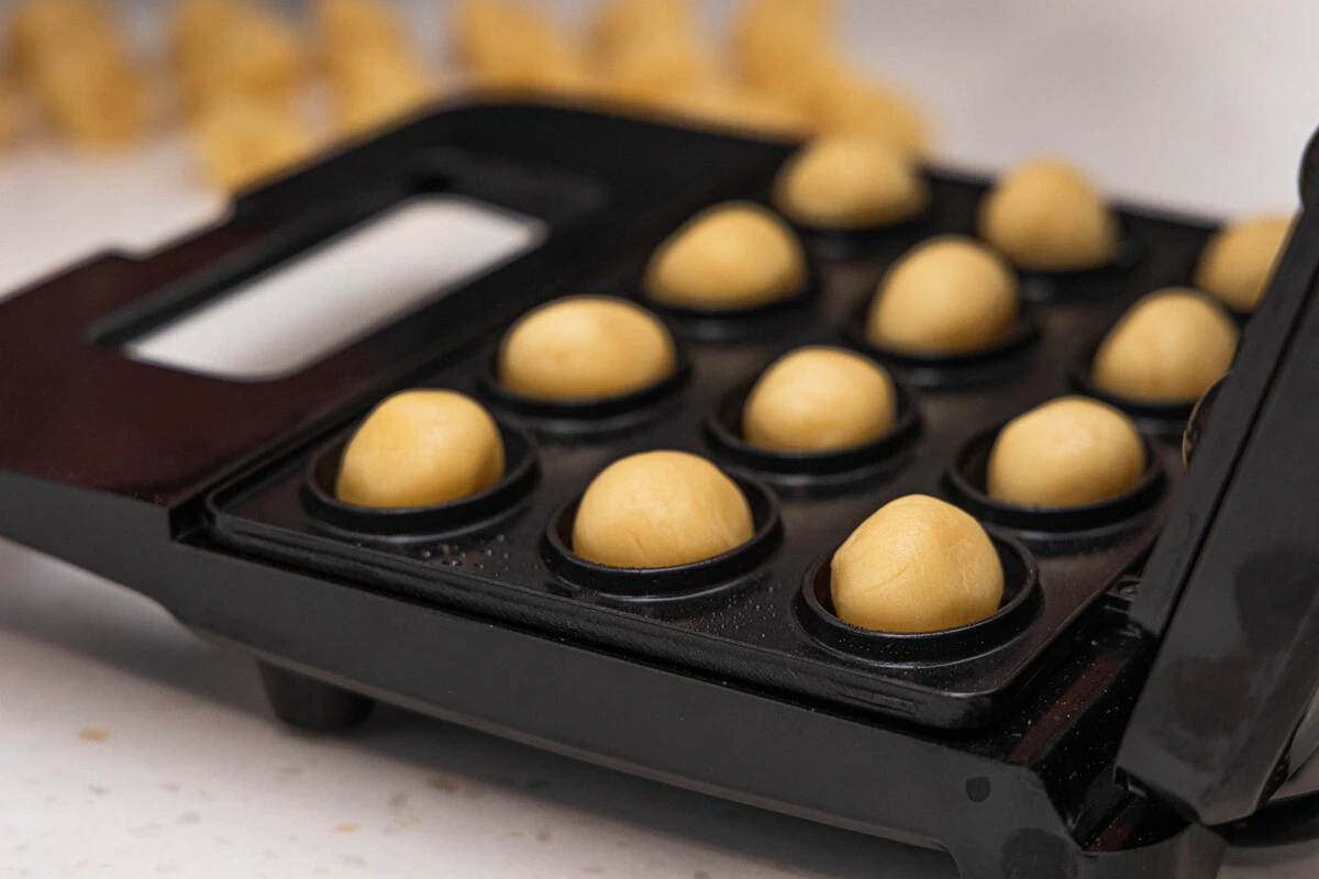 Разогрейте орешницу, смажьте выемки маслом с помощью силиконовой кисточки. Выложите в форму шарики теста и выпекайте до золотистого цвета. Дайте готовым «скорлупкам» немного остыть при комнатной температуре.