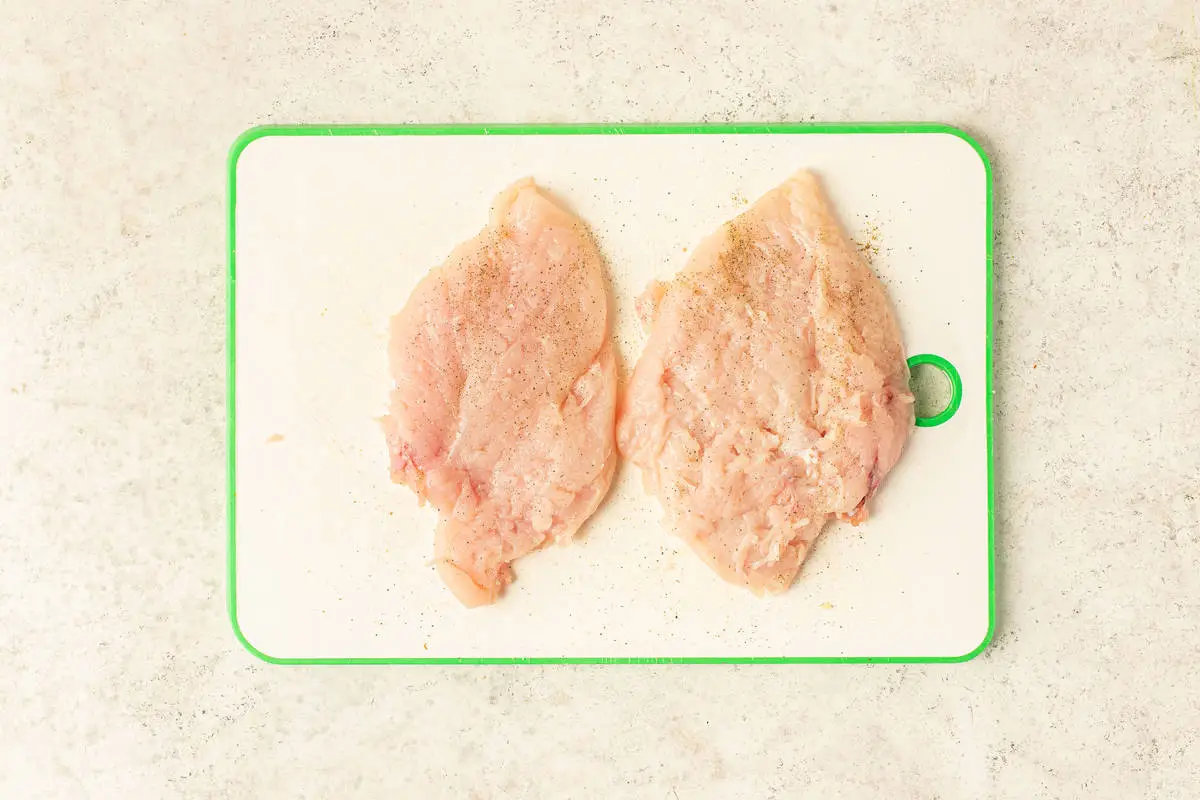 Каждое филе раскройте, делая небольшие продольные разрезы. Отбейте, чтобы получились достаточно тонкие пласты, посолите, поперчите.