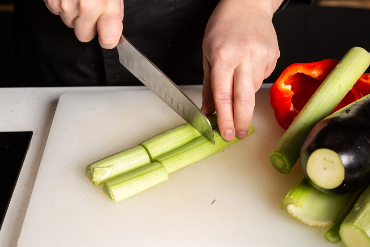 Остальные овощи порежьте крупным кусками или палочками по 3–4 см.