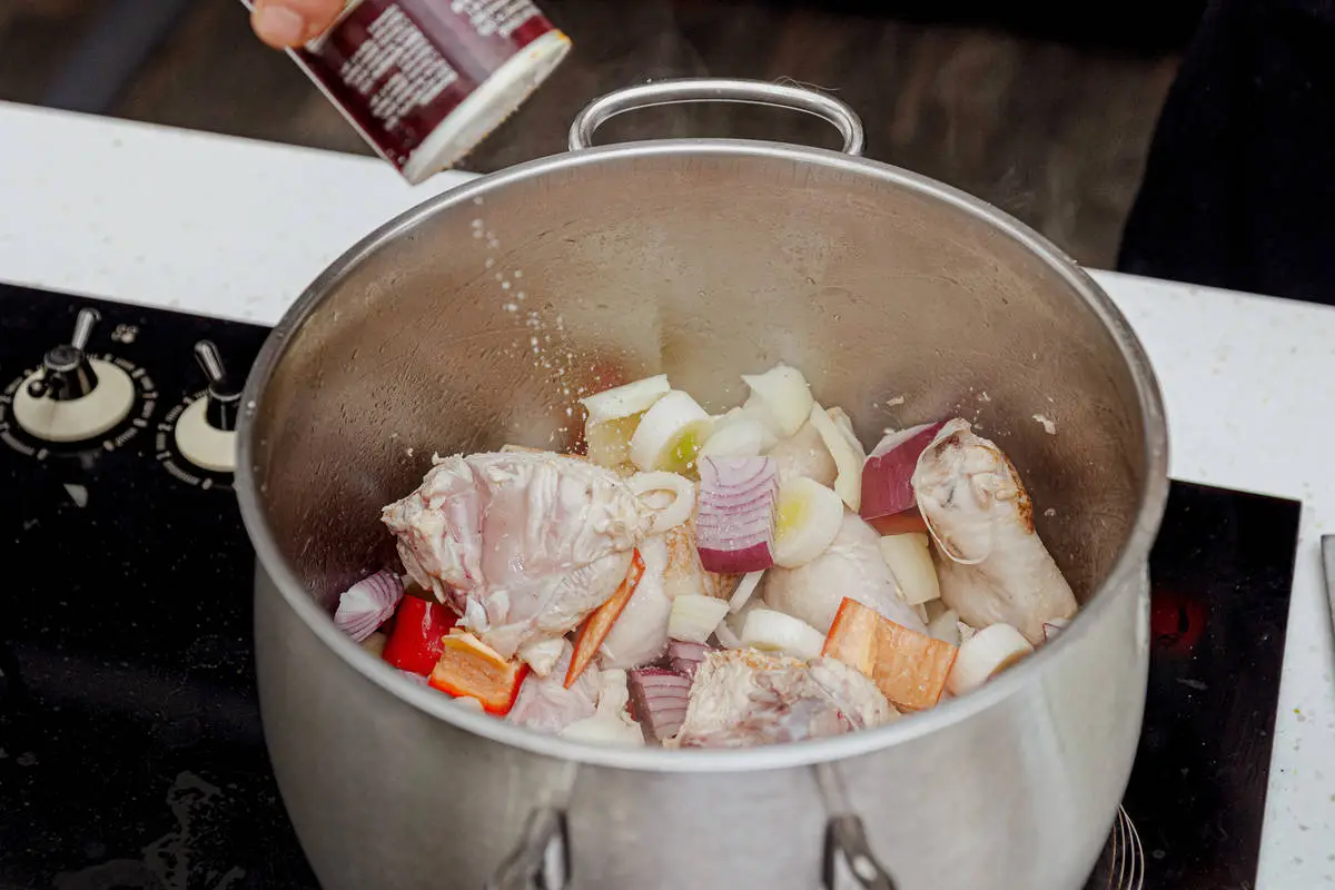 Овощное рагу с курицей, кукурузой и брюссельской капустой