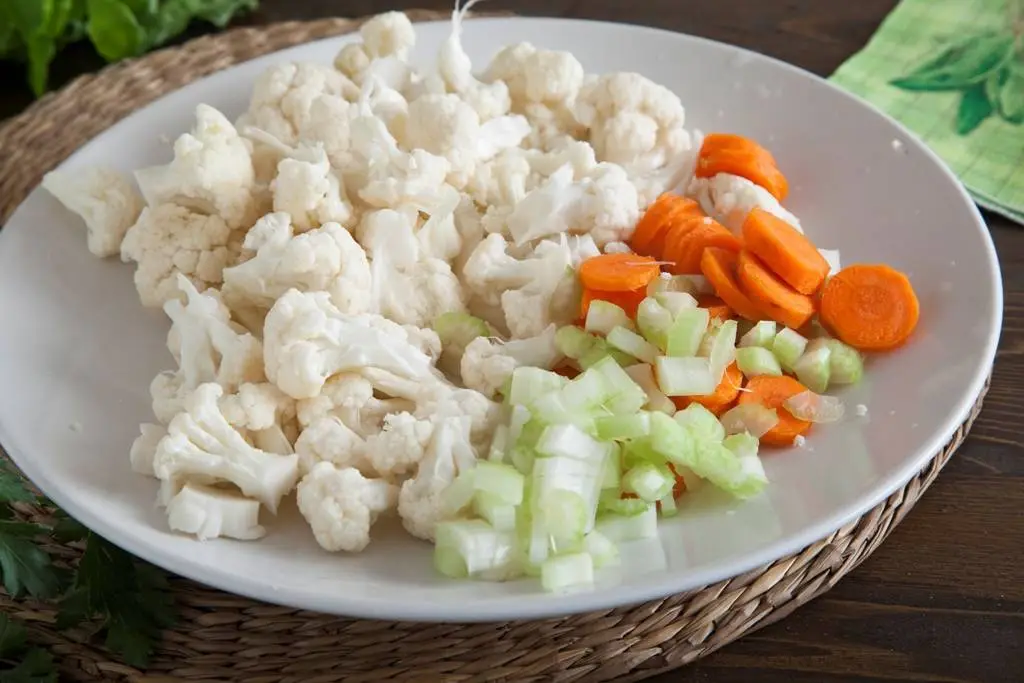 Подготовьте овощи: морковь очистите и нарежьте кружочками, сельдерей кубиками, разберите капусту на соцветия. Добавьте овощи в кастрюлю и варите до готовности риса. Добавьте порезанные помидоры, измельченный чеснок и порубленную зелень, прогрейте еще минуту и выключите огонь. Дайте супу настояться под крышкой 15 минут и подавайте!