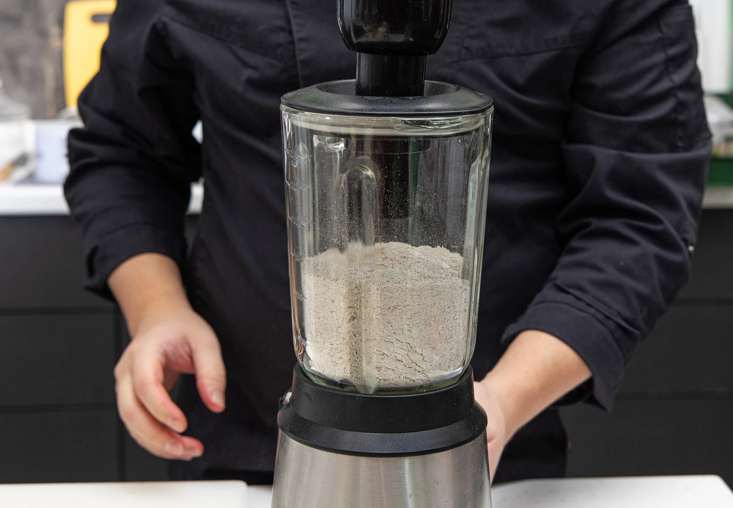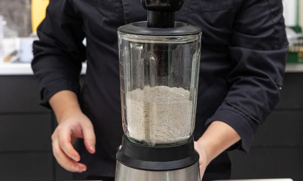 Хлопья слегка пробейте блендером так, чтобы остались сегменты овсянки.