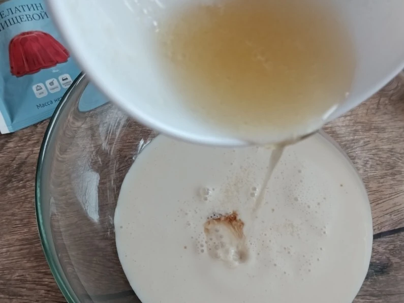 Добавьте желатин к ряженке и перемешайте до полного растворения.