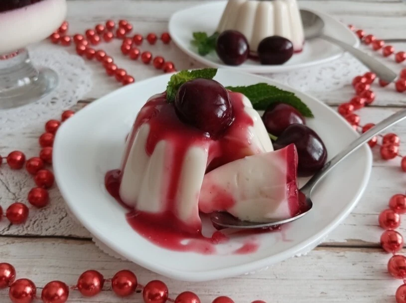 Панна-котта на ряженке с черешней