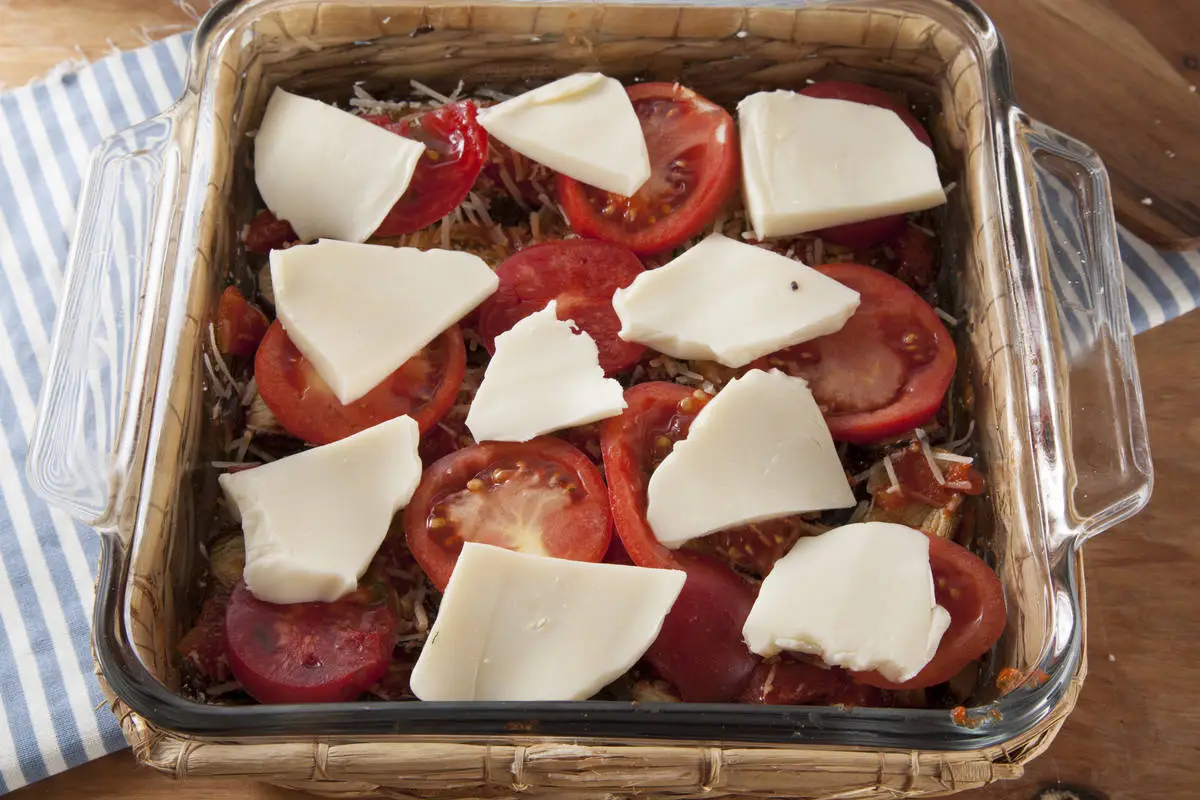 Помидоры и моцареллу порежьте кружочками, пармезан натрите на мелкой терке. В форму для запекания влейте немного томатного соуса, затем выложите слой баклажанов, несколько кружков помидора, посыпьте тертым пармезаном, затем добавьте еще соус и повторите последовательность. Последним слоем выложите кружки моцареллы. Запекайте в духовке 20-25 минут. Вкусно как в горячем, так и в холодном виде, попробуйте!