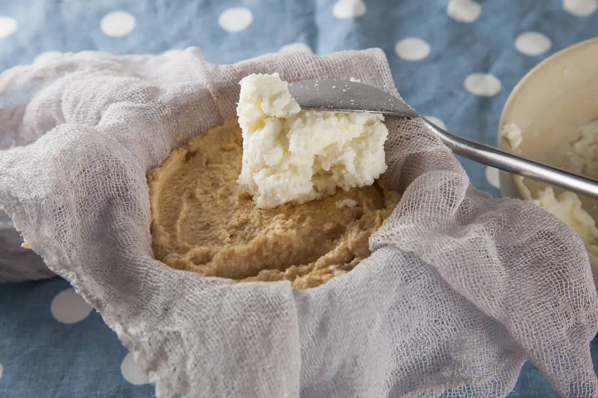 Две пачки рикотты протрите через сито в две разные миски. Можно воспользоваться миксером, но протирание через сито позволяет получить наиболее нежную и воздушную консистенцию. Просто установите обычное металлическое сито для муки на глубокую тарелку, выложите рикотту в сито и растирающими движениями столовой ложкой проталкивайте рикотту сквозь сито.