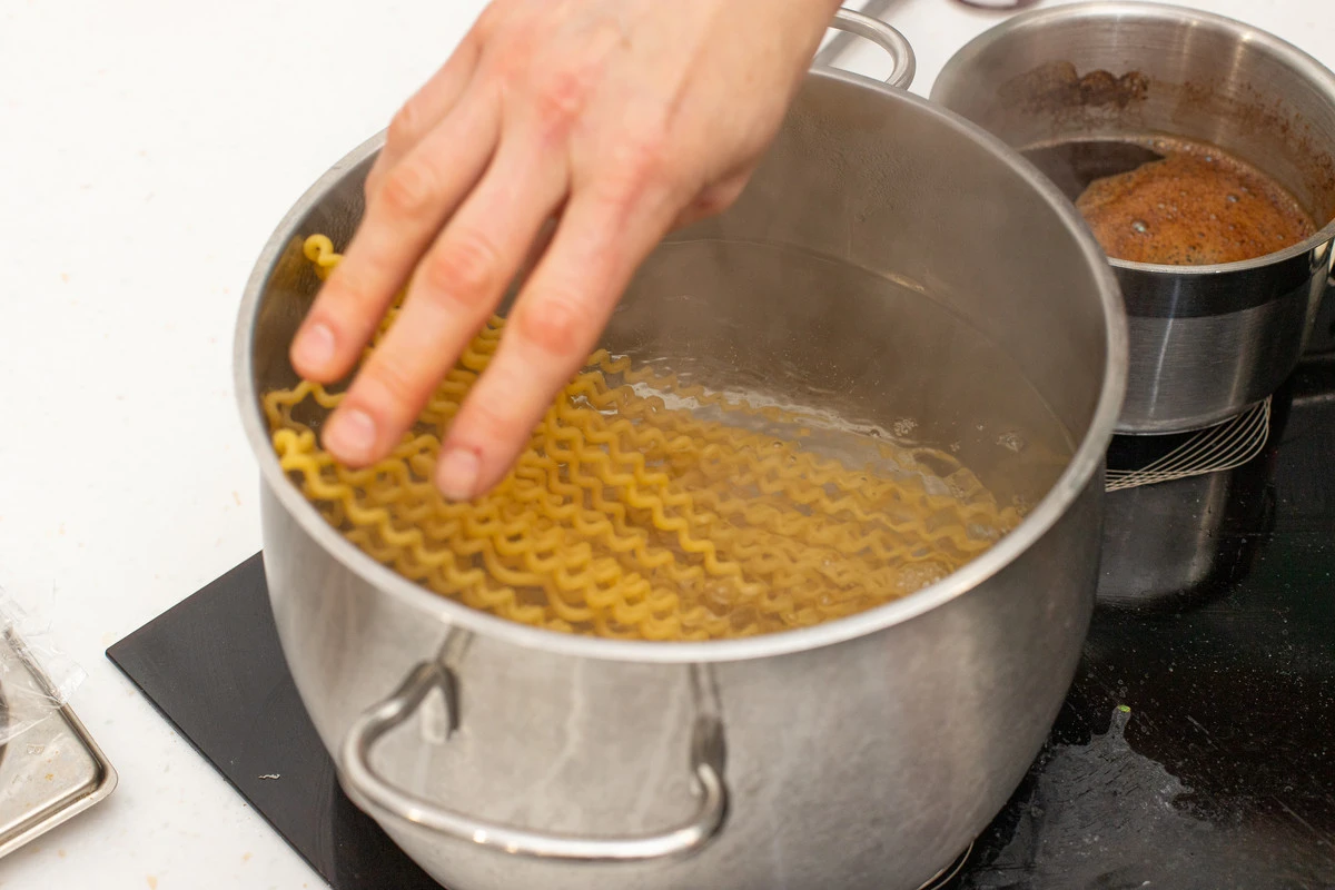 Поставьте вариться пасту в большом количестве кипящей подсоленной воды.