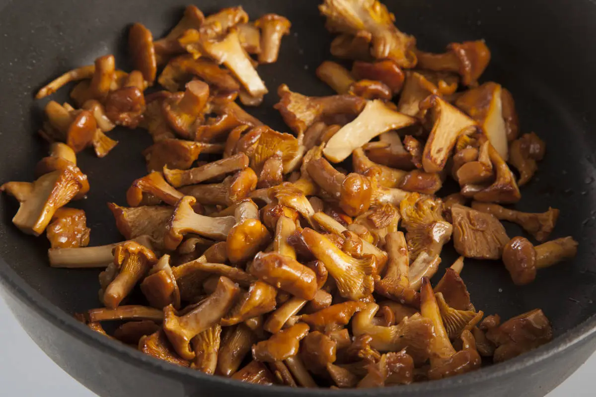 Добавьте немного оливкового масла, соль и поджарьте лисички до румяной корочки.