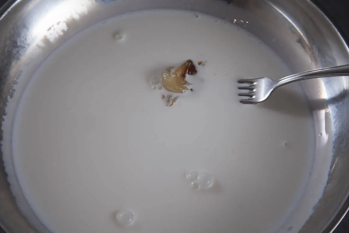 В сотейник налейте сливки, добавьте мякоть запеченного чеснока и размешайте, прогрейте сливки вместе с чесноком пару минут, если используете замороженный шпинат, то добавьте его сразу.