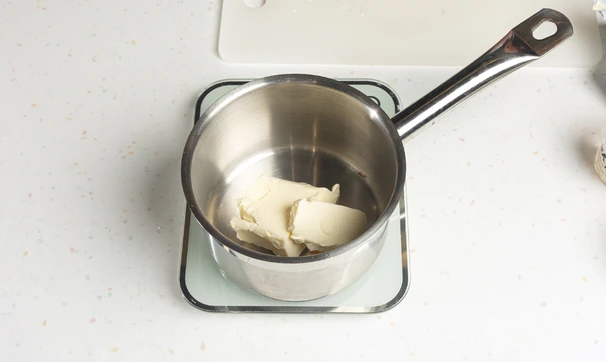 Растопите в сотейнике сливочное масло и доведите до кипения, держите на огне до тех пор, пока оно не станет коричневым. Это займёт около 3–4 минут.