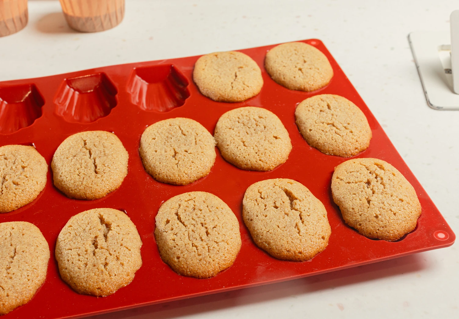 Налейте по 1 ст. л. желе в формы. Сверху положите остывшие мадленки, придавите и уберите форму морозилку на 1 час.