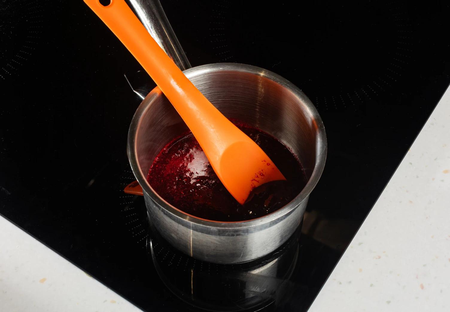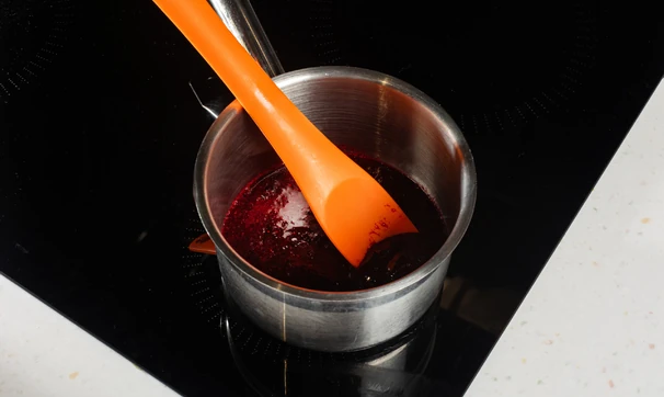 Нагрейте пюре из чёрной смородины до пара, всыпьте пектин с сахаром дождиком и, размешивая венчиком, доведите начинку до кипения. Прокипятите 1 минуту и снимите с огня. Добавьте сок лимона и перемешайте.