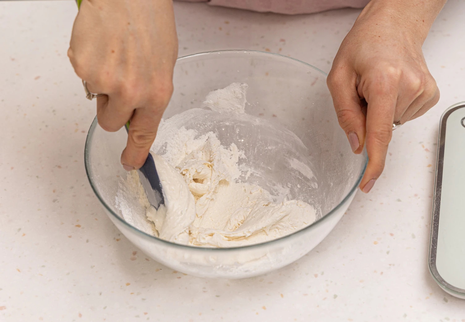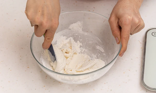 Приготовьте глазурь: аккуратно перемешайте (но не взбивайте) все ингредиенты до получения плотной белоснежной массы.