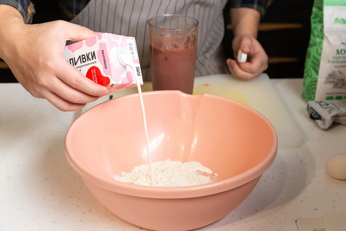 В миске смешайте муку и сливки. Добавьте печень, соль, перец и перемешайте до однородности.