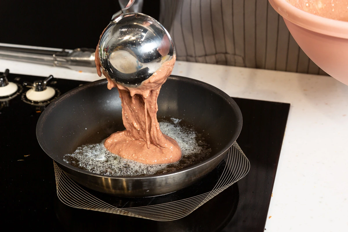 Разогрейте сковороду со сливочным маслом и испеките из печёночного «теста» блины.
