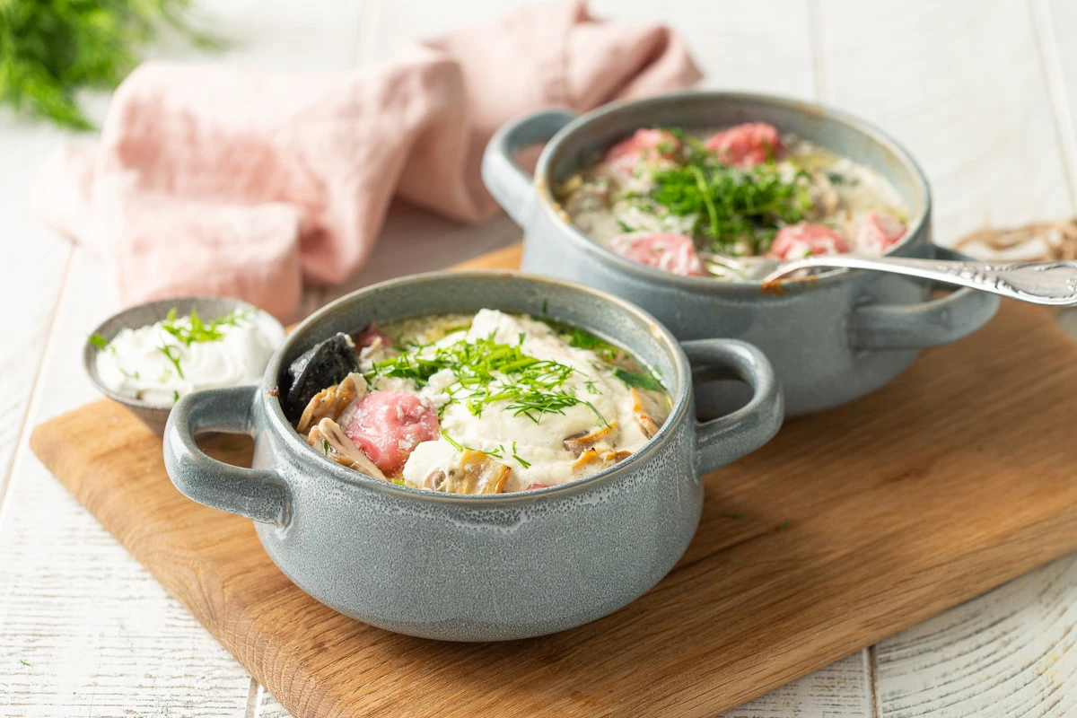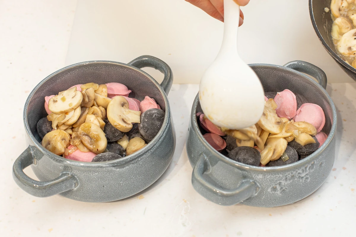 Пельмени можно не только отварить, но и запечь в горшочках в духовке. А если добавить обжаренные грибы, сметану и взять, например, наши пельмени «Пара вкусов» с индейкой и мраморной говядиной, получится ещё вкуснее.