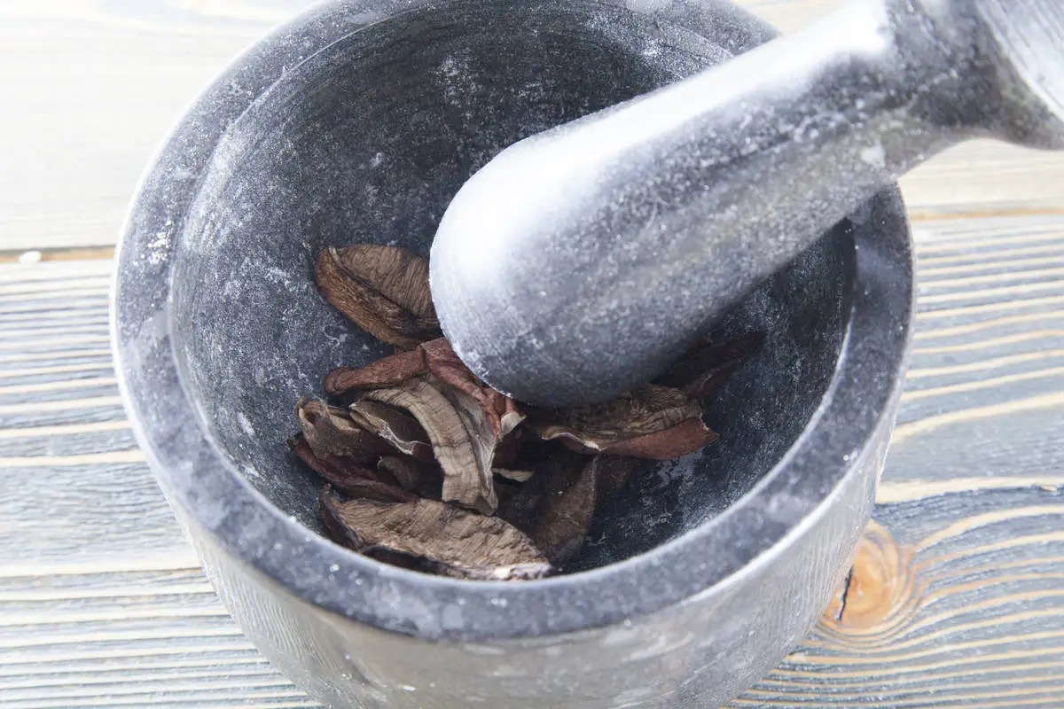 Грибы поломайте не слишком мелко и залейте холодной водой.