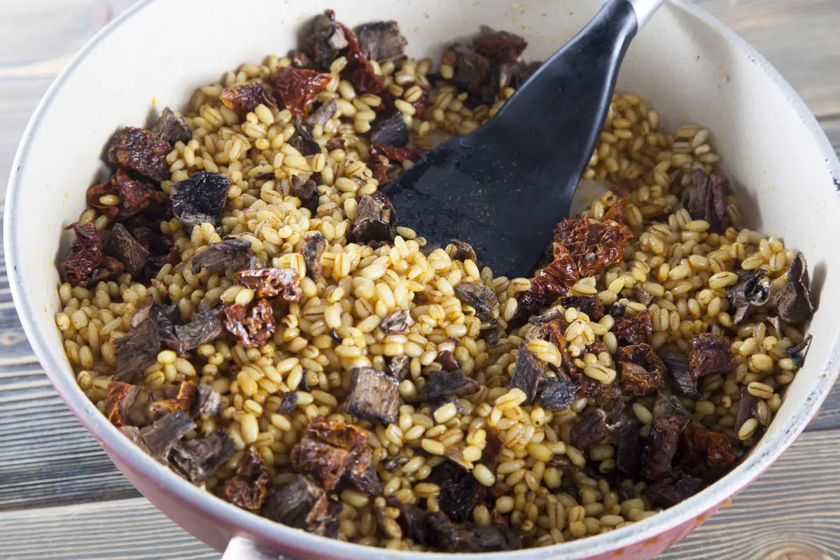 Рецепт «Перловка с вялеными помидорами, перцем и грибами»